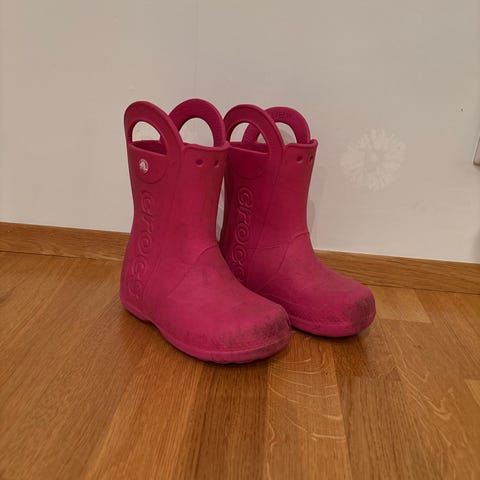 Pinkit Crocs-merkin kumisaappaat, sopii parhaiten koossa 30/31. Käytön jälkeä löytyy, on ehjät. Pohjan ulkomitta 23cm.