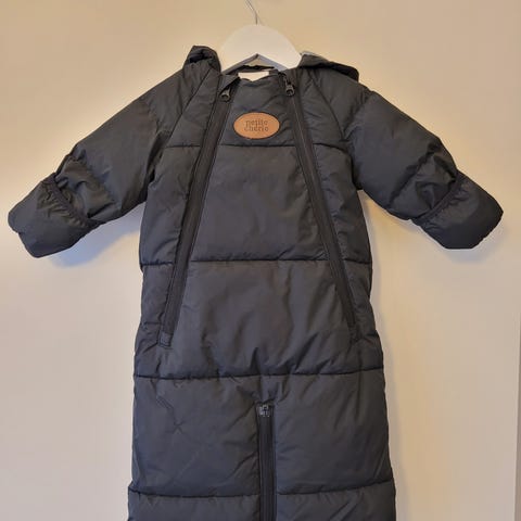 Harmaa ja sisältä pinkki lämpöhaalari lapselle 3-6 kuukauden ikäiselle esim.vaunu ulkoiluun.
