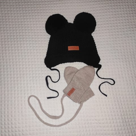 Pipoja ja hanskoja settinä 46-50 päähän. Gugguun merinopipo ja puuvillapipo, Metsolan puuvillapipo ja Metsolan kankaasta trikoopipo. Lisäksi jonkun diy leopardipipo, merinokypärämyssy, vk hanskaa ja sormikkaita.