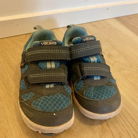 Viking kangaskengät joustavalla pohjalla (kuin paljasjalkakenkä, katso lisäkuva) koko 24 (sisämitta 14,5cm). Toisen tarran ommel hieman purkautunut, mutta saa korjattua ompelemalla ja on kestänyt käytössä myös noin. Tarrat pitää hyvin, katso lisäkuva. Kunto muutoin erinomainen. Savuton koirakoti. Hinta 8e.