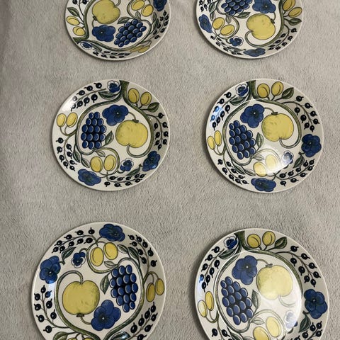 Vuosia vanhat Paratiisi-lautaset 3 kappaletta, kaikki eri kokoisia. Desing Birger Kaipiainen.