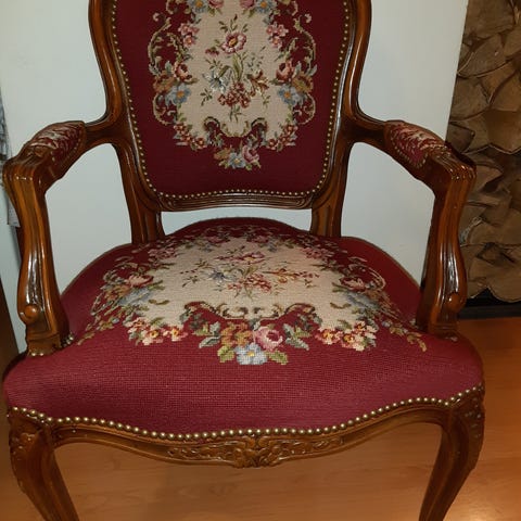 Rokokoo Käsinojallinen tuoli pari siisti kunto.