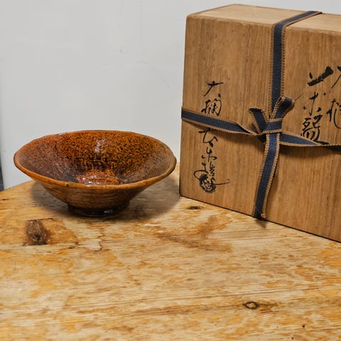 Erittäin tärkeä esine taiteilija Seigan Yamanelta. Tämä nimetty Onihagi - chawan on ehdottomasti hänen parhaimpia töitä. Ei kannata sekoittaa tätä niihin enemmän massavalmisteisiin peruskulhoinin. Tämä on näyttelyesine ja nimetty kulho. Tulee alkuperäisessä signeeratussa puisessa säilytysrasiassa. Erinomainen kunto.