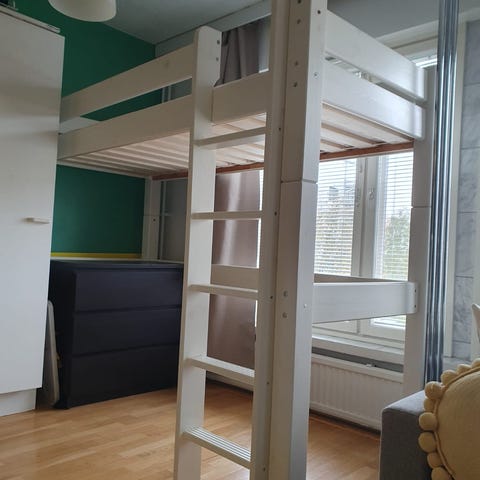Kuvan mukainen Tavlund monitoimisänky myytävänä Ranuan Piittisjärvellä. Erittäin kestävä ja vakaa. Vasemmalla iso kaappi, jossa kolme hyllyä ja vaatetanko, pohjapinta-alaa reilusti. Pitää purkaa hieman. Omat kantajat mukaan. (Ovh; 649€)