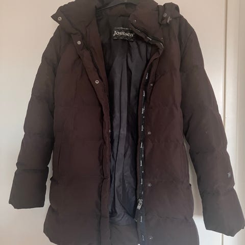 Joutsenen hupullinen punainen toppatakki koko 40. Huppu irroitettavissa neppareilla. Takissa sekä vetoketju, että nepparikinnitys. Hihansuissa ja kaulalla nepparit, voi säätää kireyttä.