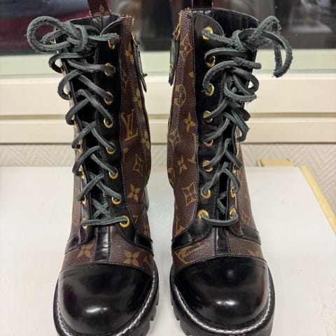 Louis Vuitton Star Trail -nilkkurit ovat näyttävät kengät, jotka on valmistettu klassisesta Monogram canvaksesta! Nilkkureissa on nilkan kohdalla joustavaa kangasta, jotta käyttäminen on vaivatonta. Täydelliset niin arkeen, työtilaisuuksiin kuin illan juhliin, nämä nilkkurit tekevät vaikutuksen missä tahansa! Kengät ovat valmistettu Italiassa vuonna 2016.