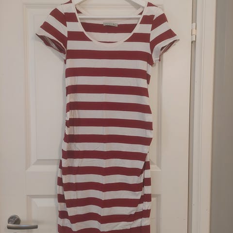 Kiva trikoinen raskausmekko, pientä pesuhaitua, mutta hyvässä kunnossa.