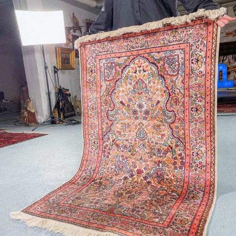 käsinsolmittu itämainen aitomatto villamatto vintage persialainen palatsimatto aito silkki kasmir käsinkudottu käsin käsintehty käsityö antiikkimatto vintagematto helsinki helsingissä
