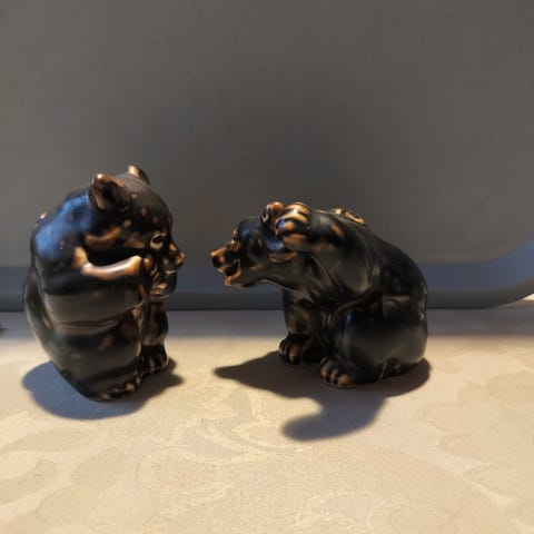 Ruotsalaiset komeat karhupatsaat. Yleensä näitä myydään huutokaupoissa. Materiaali ilmeisesti maalattu valumassa.