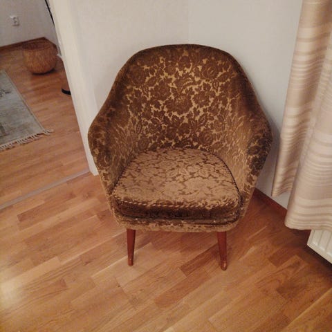 Kaunis vanha ja hyväkuntoinen nojatuoli etsii uutta kotia.