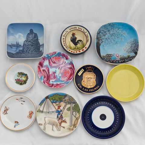 Royal Copenhagen / Denmark valmistamat kauniit pienet ( halk. 8 cm) sinivalkoiset koristelautaset. Kuvista näet kunnon, siistissä kunnossa, osassa krakleeta. Ei säröjä.