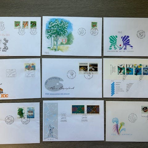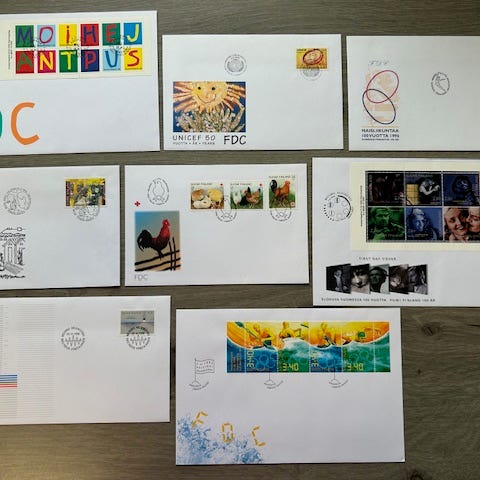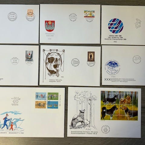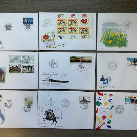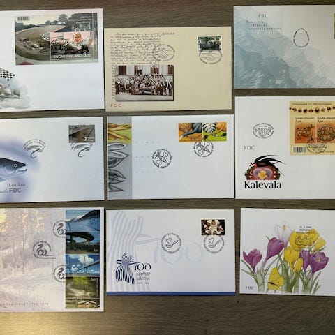 11 kpl kansiossa ja taskuissa säilytettyjä.