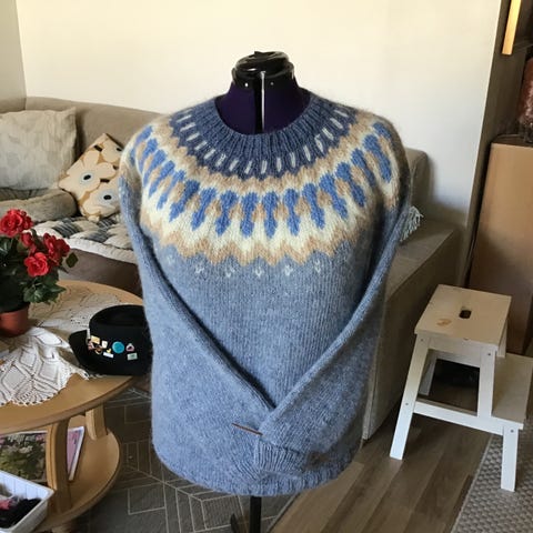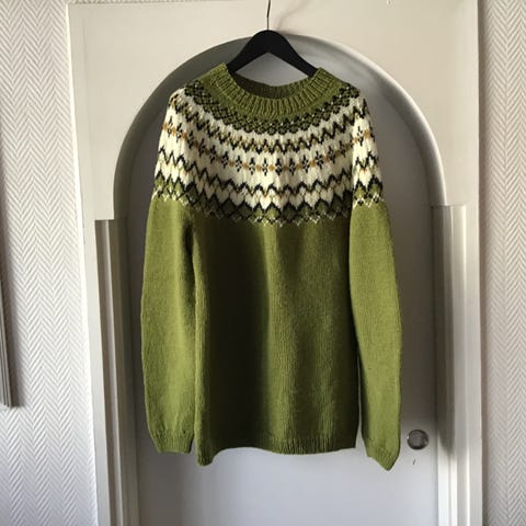 Kirjoneulepaita, koko XL, terra/ bees. Valmistettu 100% islanninvilla materiaalina, sopii miehille sekä naisille. Tarkemmat mitat saa tarvittaessa. Neulepuserossa on kirjoneule kuviointi ja pyöreä kaula-aukko.