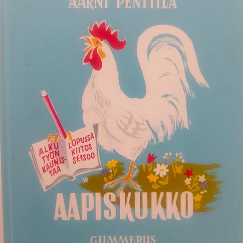 "Jyväskylän Kasvatusopillisen Korkeakoulun Suomen kielen professorin Aarni Penttilän laatima komea aapinen Aapiskukko herätti heti ilmestyttyään suurta huomiota. Se onkin kuin iloinen ja värikäs kuvakirja, johon lapsi ihastuu ja kiintyy, se on uteliaisuutta herättävä, joten lapsi sen ääressä oppii lukemaan melkein huomaamattaan. Heti ilmestymisvuonna 1938 Aapiskukko otettiin lukukirjana käyttöön useissa kouluissa kautta maan."