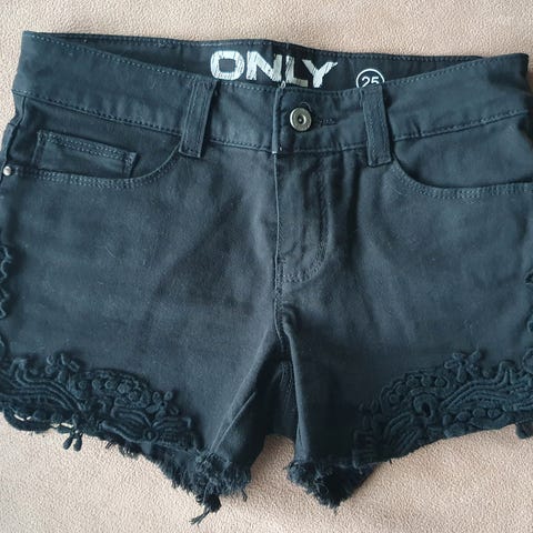 Valkoiset siistit Onlyn pitsisomisteiset farkkushortsit. Kokoa 27.
