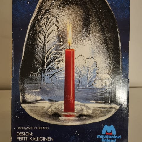 Muurlan riippuva lasinen kynttilälyhty, jossa on kaunis maisemakuva. Lyhty on valmistettu kirkkaasta lasista ja siinä on metalliketju ripustamista varten. Sopii käytettäväksi LED-kynttilän kanssa. tai normaali kynttilä Voin postittaa