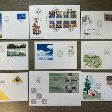 17 kpl kansiossa ja taskuissa säilytettyjä.