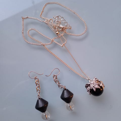 Sekalainen kokoelma koruja, sisältäen kaulaketjuja, rannekorun, sormuksen ja korvakorun eri materiaaleista ja väreistä. Korut ovat erikokoisia ja soveltuvat monenlaiseen käyttöön.