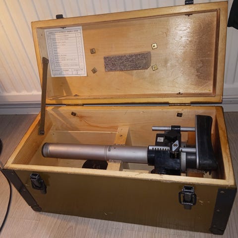 – Toiminta testattu: putki syttyy, ristikon kirkkaussäätö toimii, optiikka siisti. Mukana okulaarin kumitutti ja toinen varakappaleena. Ylimääräinen IR/punavalosuodatin, ilmeisesti 620 nm ylipäästösuodin.