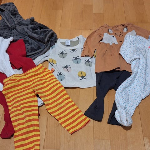 Vaatepaketti 9kpl. Koot enimmäkseen 74. Paljon käytettyjä ja kunto osassa sen mukainen. Katso lisäkuvat.
