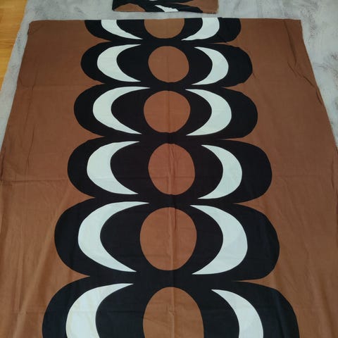 Hyväkuntoiset Marimekon kankaiset 1 pussilakana, 1 aluslakana, 2 tyynyliinaa, H, yht, 80+ posti