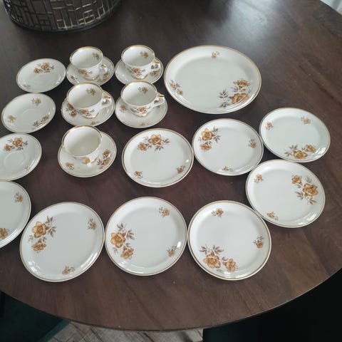 Myydän settinä yhteishintaan 110 euroa. Voit tarkistaa astiaston kunnon ennen lopullista ostopäätöstä. Sopii itselle tai vaikka lahjaksi äidille, mummille..