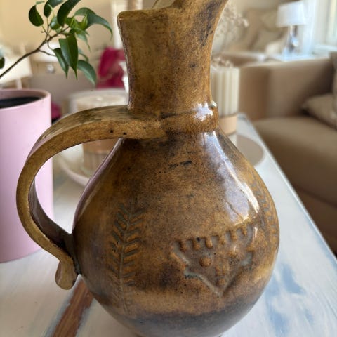 Mukien ja kannellisen kannun pohjassa kaiverrus, kuva 2. Isossa kannussa ei kaiverrusta.