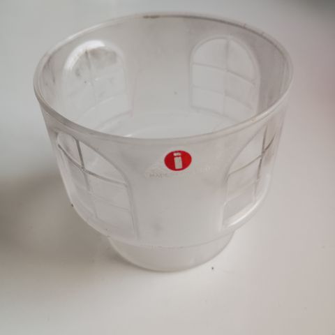 Design Ken Benson. Myynnissä 1 kpl sisäpinnaltaan etsattu tuikkulyhty. Lyhdyn korkeus on 7,2 cm ja suuaukon halkaisija 8,2 cm. Tuikkulyhty on täysin ehjä ja hyväkuntoinen, Iittalan tarra myös tallella.
