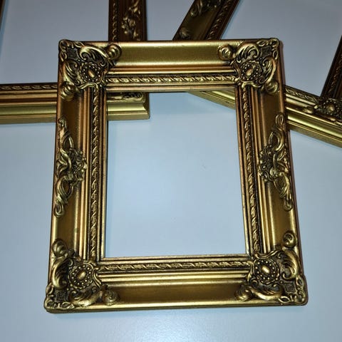 Myynnissä 7 kpl vanhoja kehyksiä. Kuuden kehysten lasit ovat ehjiä (joissakin on pieniä naarmuja) ja niissä kaikissa on toimivat pidikkeet. 5 kehystä ekassa kuvassa ja 2 kehystä vikassa.