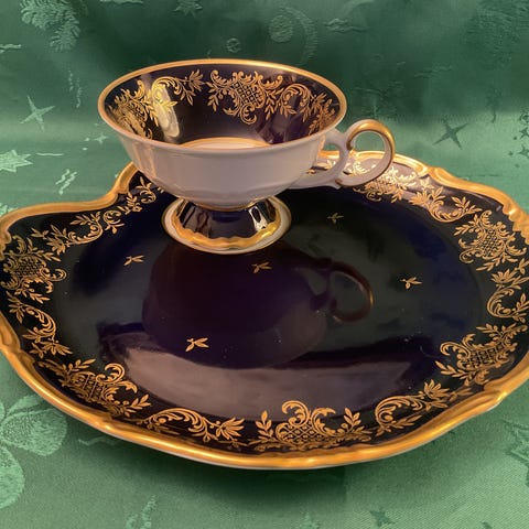 Nämä ovat olleet aina käsinpestyjä ja vain tärkeissä kattauksissa käytettynä, muuten asuneet vitriinissä. Astioissa ei ole säröjä tai halkeamia. Kultaukset erinomaisessa kunnossa!