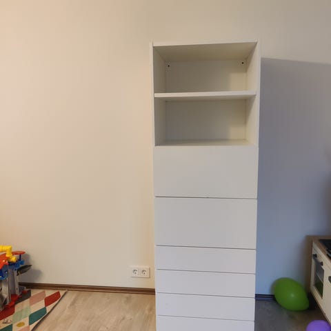 IKEA Småstad/platsa säilytyslaatikko. Tuote soveltuu hyvin esim lasten tavaroiden/lelujen säilytykseen. Yleisilme hyvä mutta laatikon pinnassa on hieman käytön jälkiä, eniten ovessa - katso kuvat.
