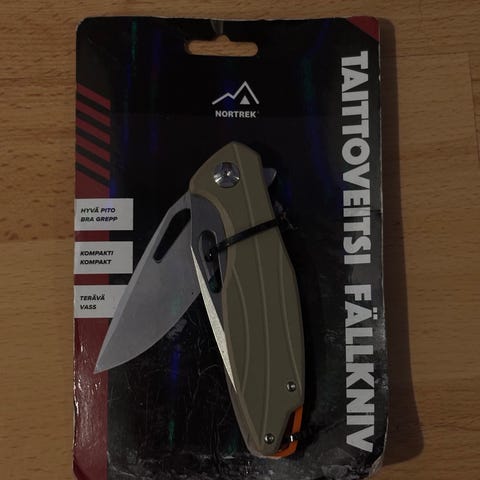 Retki taittoveitsi musta. Avaamaton pakkaus. Sisältää kotelon veitselle.