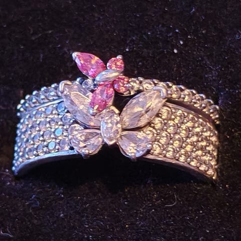 Samassa paketissa kaksi Pandora sormusta kooltaan 54. Menevät sormeen sopivasti limittäin.