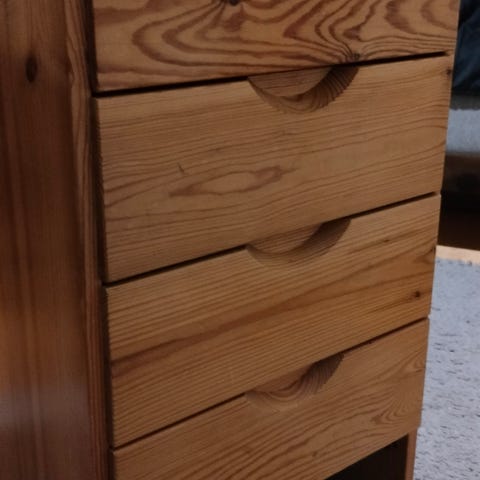 Lipasto kuudella laatikolla. Koira järsinyt vähän yhtä kulmaa, muuten OK.