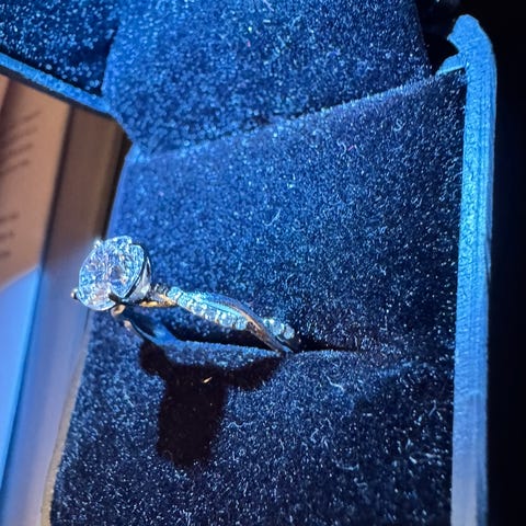 Näyttävä valkokultainen timanttisormus. Timantit ovat luonnollisia (ei laboratorio) Yhteismäärä noin 1 karaatti. Timantit istutettu valmisrunkoon. Baguet timanteissa pieniä sulkeumia, ei havaittavissa käytössä, yleisilme kirkas. Koko 17, voi pienentää tai suurentaa. Sisällä leimat 14K ja 1KS.