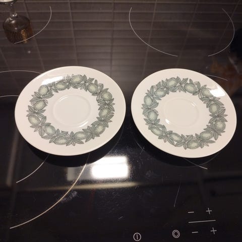 Hyväkuntoiset Arabian Citrus kahvikupit asetteineen 6kpl. Yhdessä kupissa nirhauma ja sen saa asetteineen kaupan päälle.