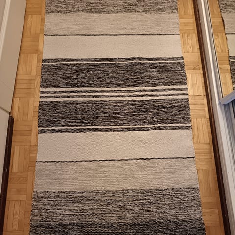 Myynnissä käytössä ollut mutta vielä hyvässä kunnossa ja pesty räsymatto.