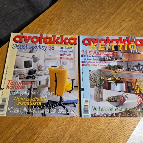 Architectural digest. Kuuluisuuksien ym koteja. Lehdessä 475 sivua. Todella siistissä kunnossa. Lisäksi ANNETAAN ( 10 - 20 kpl) vanhoja pääosin suomalaisia sisustus-, antiikki-, Avotakka, Gloria ym lehtiä. Erittäin hyvässä kunnossa. Vain nouto Kuusikosta!