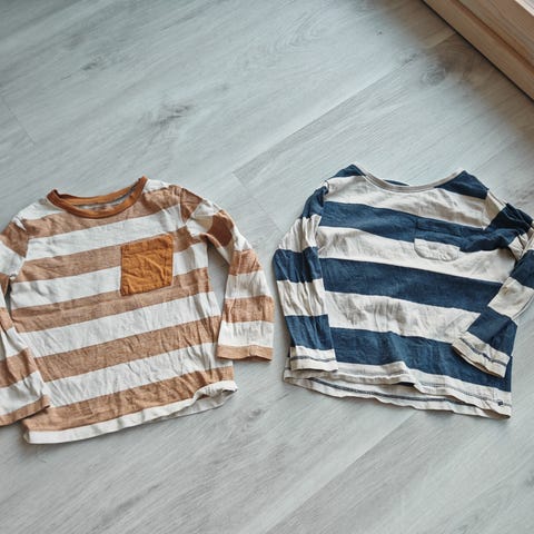 Kuvan raitapaidat. Kokohaarukka 98/104-110. Kaikki kuitenkin samaa kokoluokkaa.... KappAhl, Young Dimension, Benetton ja Lindex.