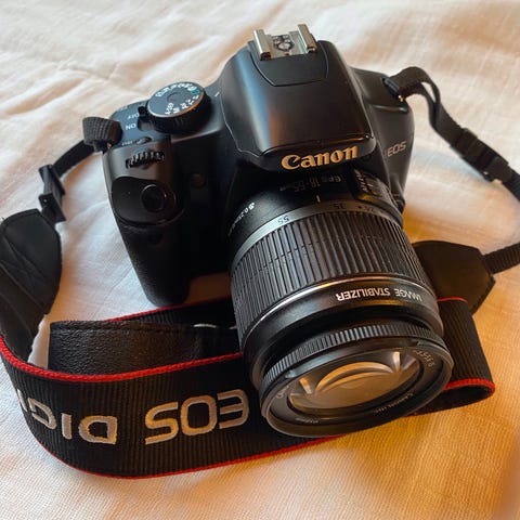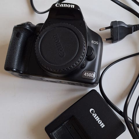 Myydään hyväkuntoinen Canon eos 450d-kamera. Toimii erinomaisesti ensimmäiseksi kameraksi kuvailuharrastusta aloittelevalle. Mukaan tulee peruslinssi Canon zoom 18-55mm 1:3.5-5.6, kameralaukku, laturi, ja 2 akkua. Toinen akuista on ollut pitkään hieman pullistunut niin, että sitä on vaikeahkoa saada kamerasta pois. Toimii kuitenkin vielä, mutta kannattaa käyttää omaa harkintaa sen käytössä.