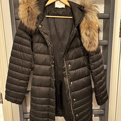 Kuvanmukainen muutaman kerran käytetty arvokas takki. Ostettu aikoinaan stocmannilta alennuksessa 450 eurolla ja nyt jäi liian isoksi äidilleni.