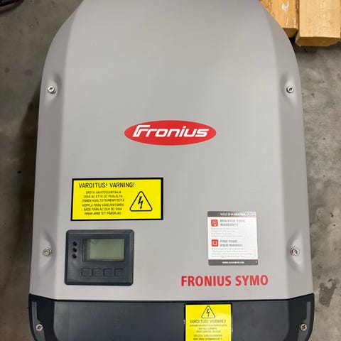 Fronius Symo 6.0-3-M aurinkosähköinvertteri, teho 6 kW, kolmivaiheinen. Myydään isomman invertterin tieltä pois. Takuuta vielä vajaa 4v. jäljellä. Kunto hyvä ja toiminut moitteettomasti.