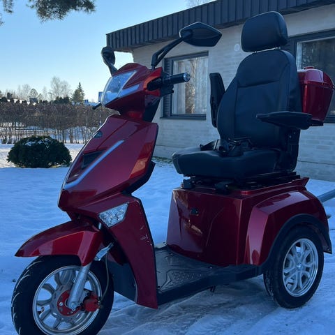 Kunto kuin uusi .Mukaan laturi Kyynersauva teline ja Penkin selkänojaan tavaran kuljetukseen tarkoitettu kori. AGM Akut uusittu.