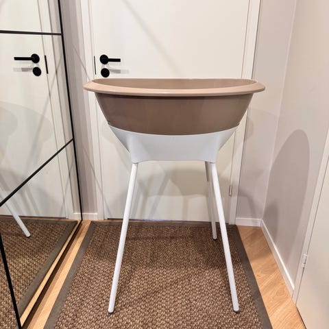 Hyväkuntoiset kylpyammeen jalat ja tuki. Kyseisiä Luman kylpyammeita saa ostettua edelleen lastentarvikeliikkeistä. Oma amme jää vielä käyttöön, mutta nämä lisäosat vauvan kasvettua jo eteenpäin.