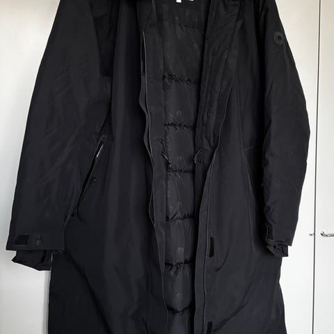 Ahkka Pitkä untuvaparkatakki mustassa värissä, naisten koko 52. Takki on pitkä malli ja todella kämmin. Paljon teknisiä ominaisuuksia, laadukas takki. Vähän käytetty, todella hyvässä kunnossa. Materiaalitiedot viimeisessä kuvassa.