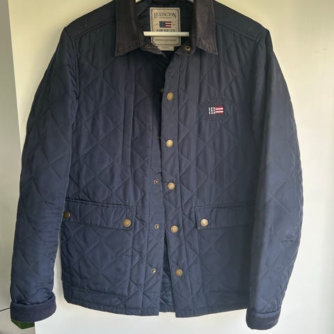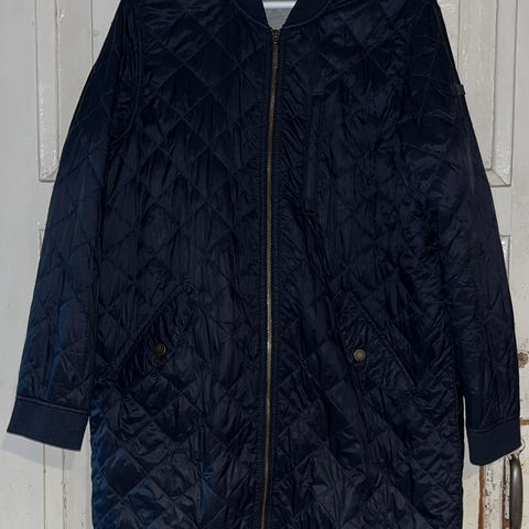 Uusi ja käyttämätön Lexingtonin tikattu takki, koko L, väri sininen, edessä nepparit ja vyötätöllä säädettävä kiristysnyöri. Ovh. 169 €, mmm.