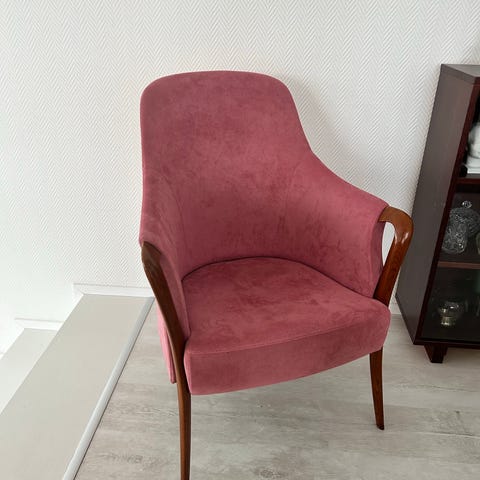 Vintage vuodetuoli vuodelta 1930, jossa on ruskea samettinen verhoilu ja puiset käsinojat. Nojatuoli avautuu vuoteeksi, jossa on raidallinen kangaspatja. Sopii istuimeksi ja tarvittaessa vuoteeksi. Istuimessa pientä kulumaa, muuten tuoli on alkuperäisessä kunnossa. Nouto Turusta tai mahdollisesti saatavilla kuljetus PK seudulle. Käteinen