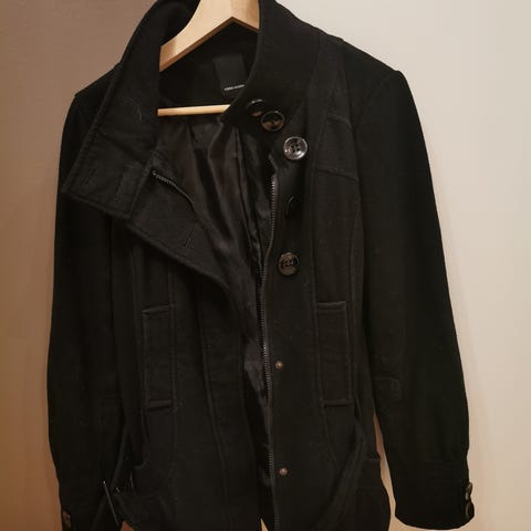Tyylikäs ja siistikuntoinen takki, jossa edessä napitus ja käytännölliset sivutaskut.