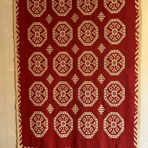 Hakusanoja vintage design tekstiili ryijy seinävaate.