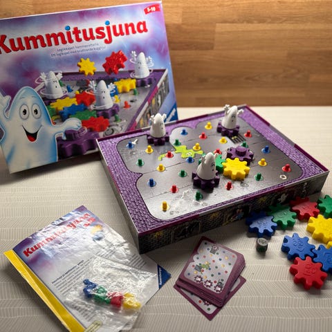 Kaikki osat tallella ja uudenveroisessa kunnossa. Kaikissa kummituksissa punaiset ja siniset tapit tallella.